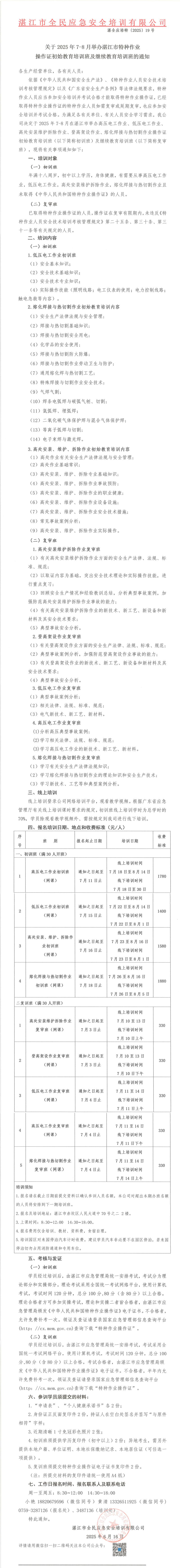 2025年7-8月高低壓電工作業(yè)、高處安裝維護拆除作業(yè)、登高架設(shè)作業(yè)、熔化焊接與熱切割作業(yè)初始教育培訓(xùn)班及繼續(xù)教育培訓(xùn)班的通知