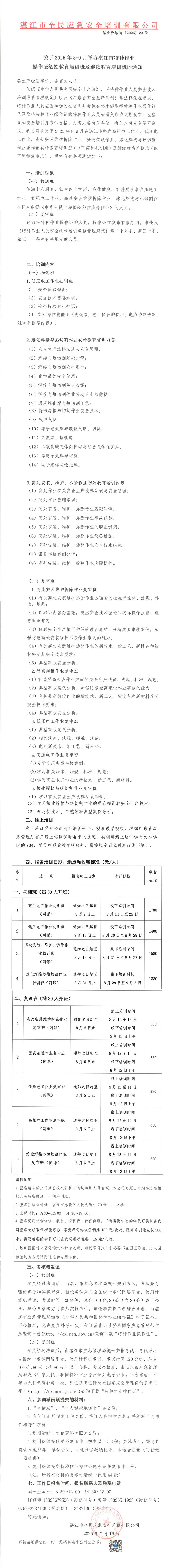2025年8-9月高低壓電工作業(yè)、高處安裝維護拆除作業(yè)、登高架設(shè)作業(yè)、熔化焊接與熱切割作業(yè)初始教育培訓(xùn)班及繼續(xù)教育培訓(xùn)班的通知