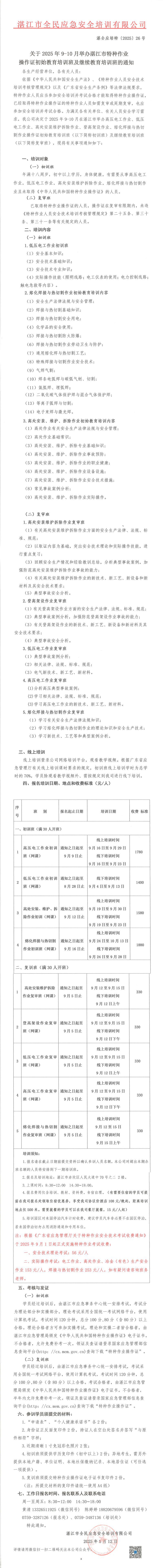 2025年9-10月高低壓電工作業(yè)、高處安裝維護(hù)拆除作業(yè)、登高架設(shè)作業(yè)、熔化焊接與熱切割作業(yè)初始教育培訓(xùn)班及繼續(xù)教育培訓(xùn)班的通知