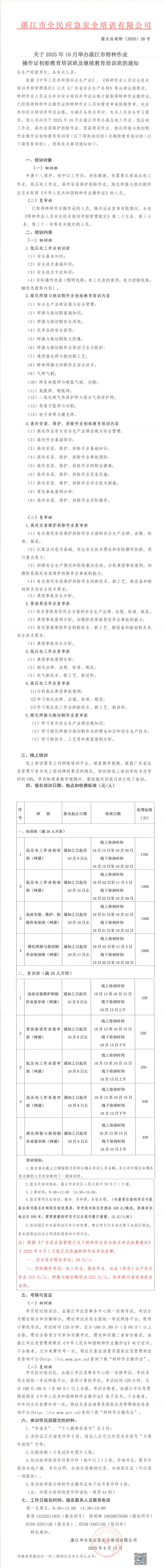 2025年10月高低壓電工作業、高處安裝維護拆除作業、登高架設作業、熔化焊接與熱切割作業初始教育培訓班及繼續教育培訓班的通知