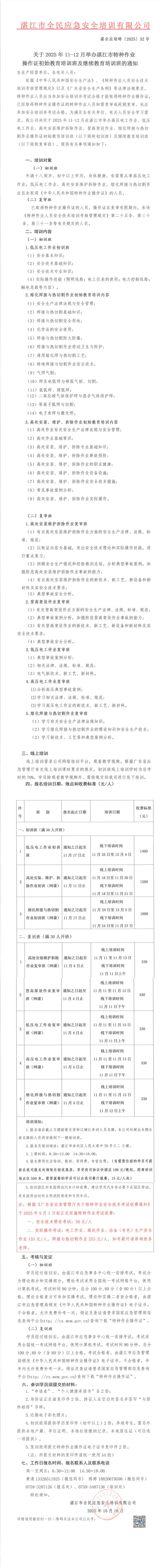 2025年11-12月高低壓電工作業、高處安裝維護拆除作業、登高架設作業、熔化焊接與熱切割作業初始教育及繼續教育培訓班的通知